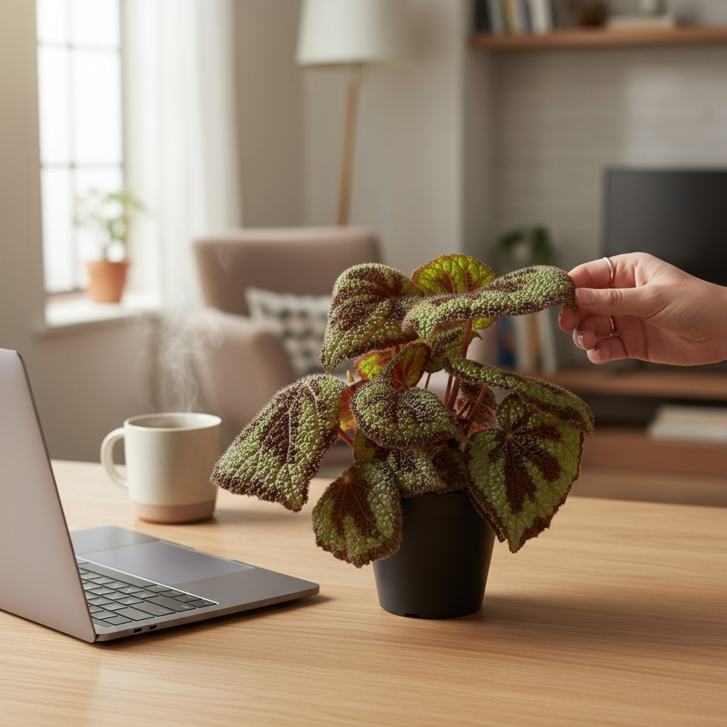Enhance your home décor with the Iron Cross Begonia (Begonia Masoniana), admired for its striking green leaves marked with a bold, dark cross pattern. Compact, stylish, and easy to care for, it’s the perfect choice for desks, shelves, and tabletops.