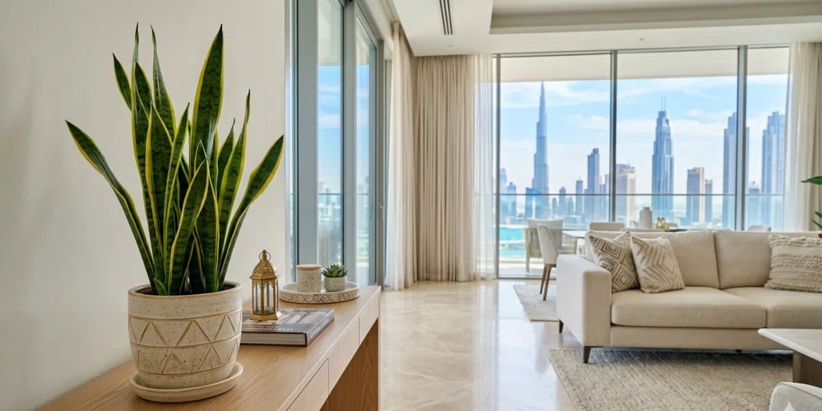 Living in apartments often means limited space and controlled indoor environments. Snake plants are ideal for these conditions. The plant grows vertically rather than spreading wide, which makes it perfect for small corners and narrow spaces. You can place it near a sofa, beside a desk, or even in a bedroom corner. Another reason snake plants work well in Dubai apartments is their ability to tolerate indoor air conditioning. Many plants struggle in rooms where AC runs for long hours, but snake plants adapt easily.
